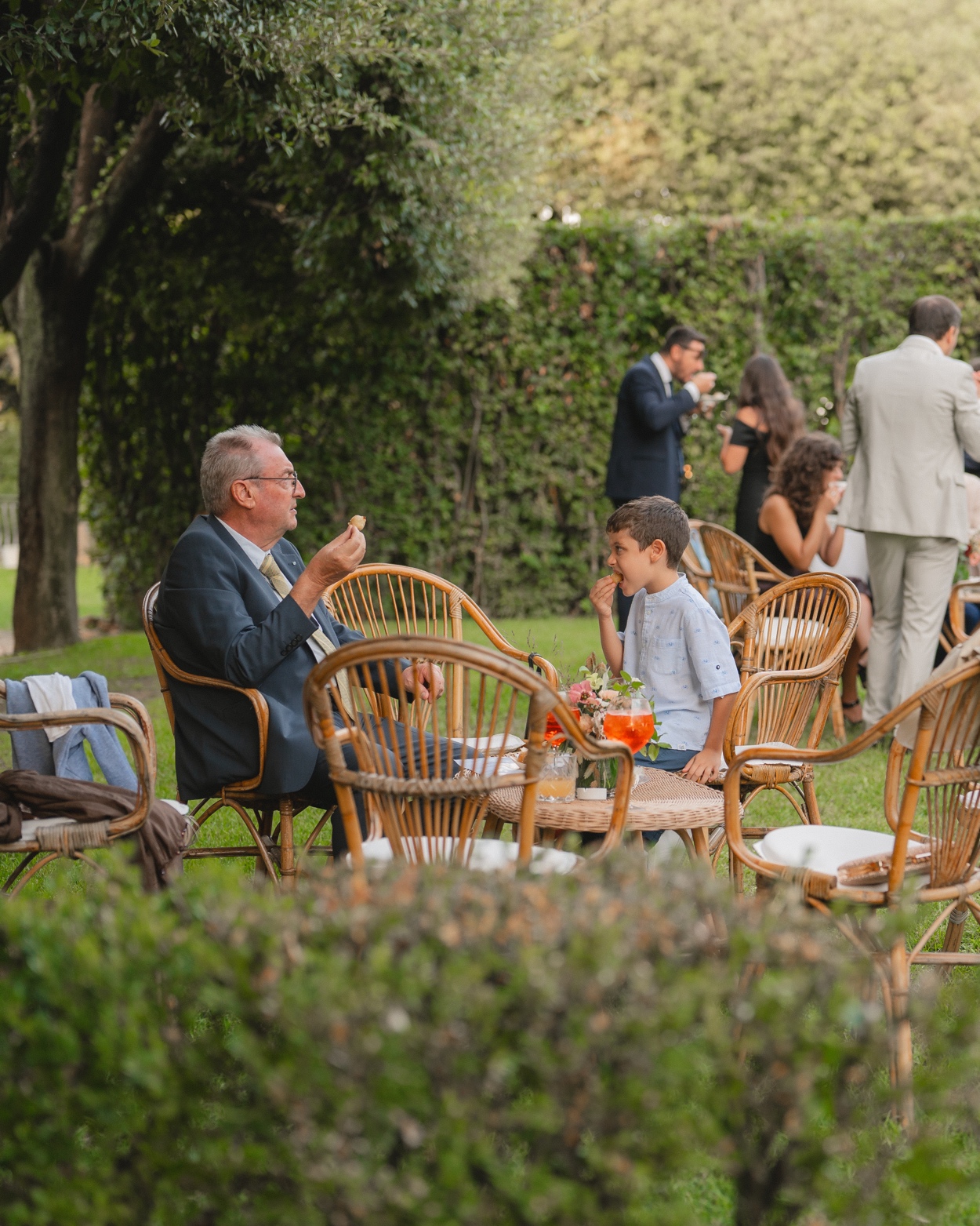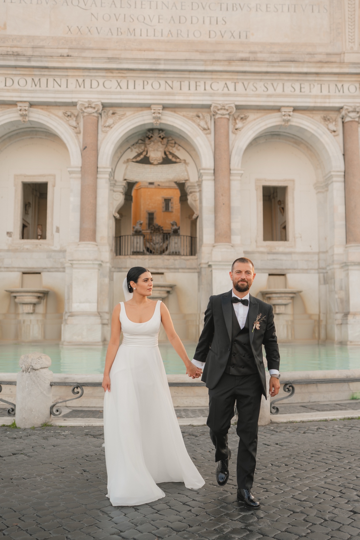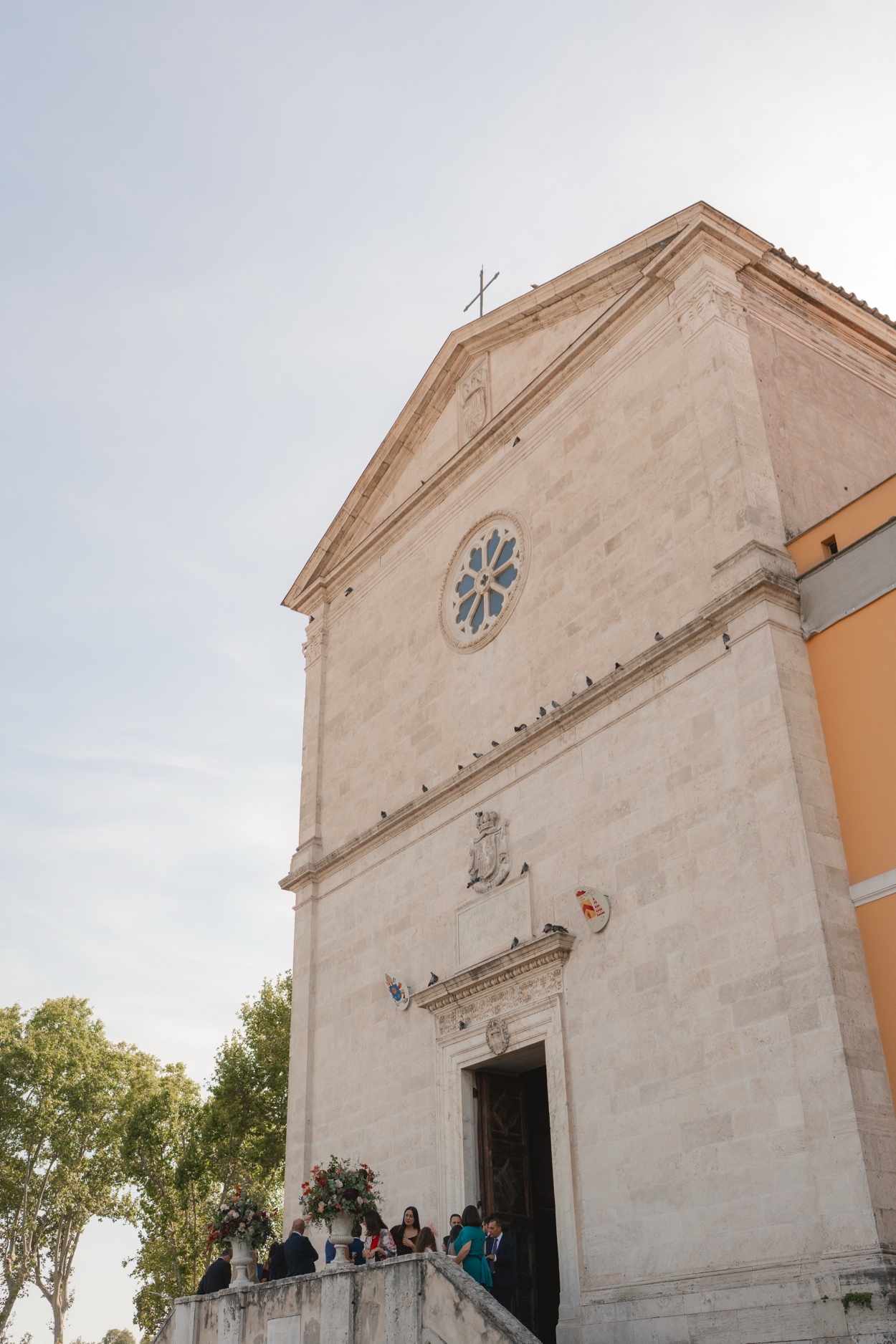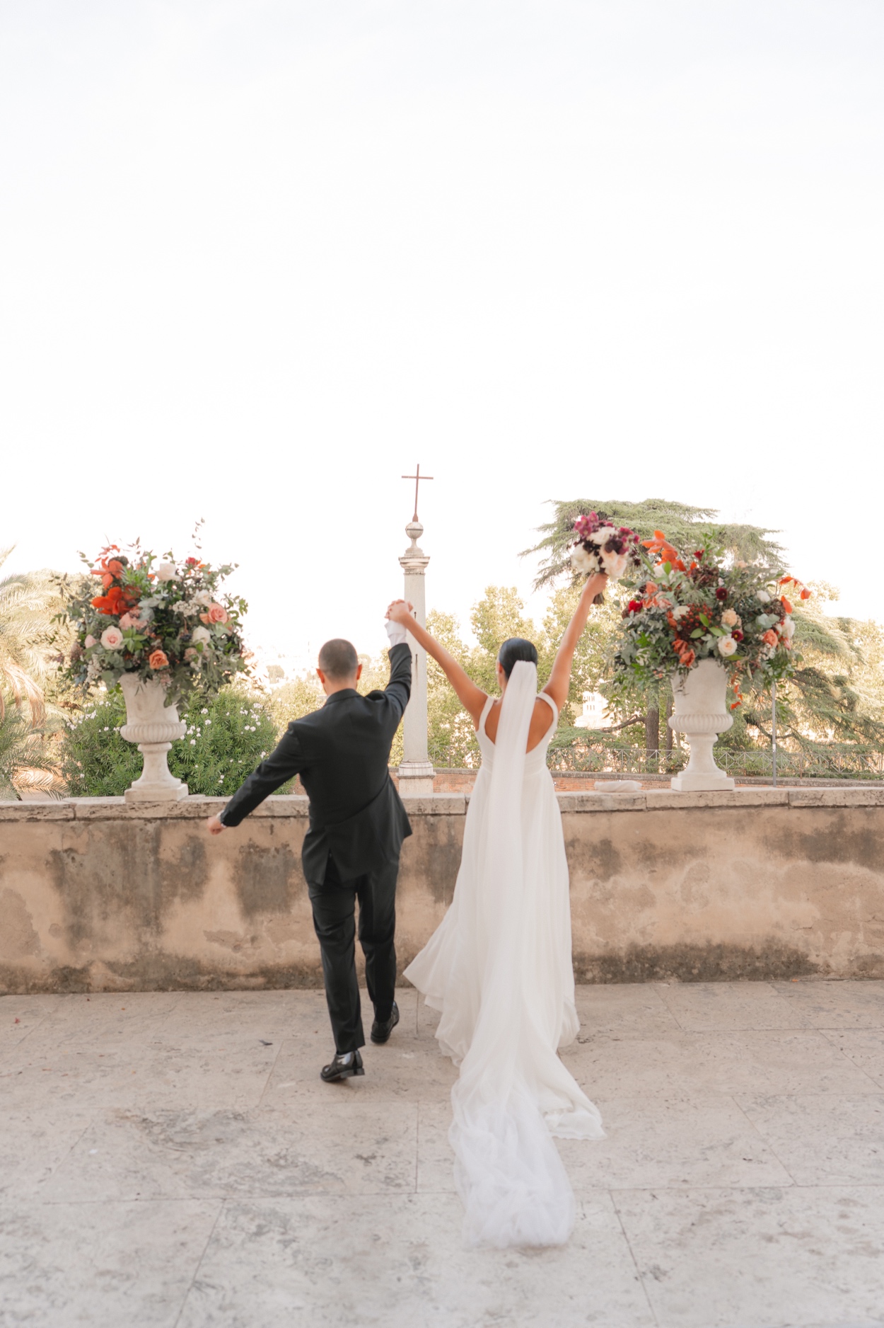 Ilaria e Alessandro hanno pronunciato le loro promesse circondati da amici e familiari, con il tramonto romano a dipingere il cielo di sfumature dorate.